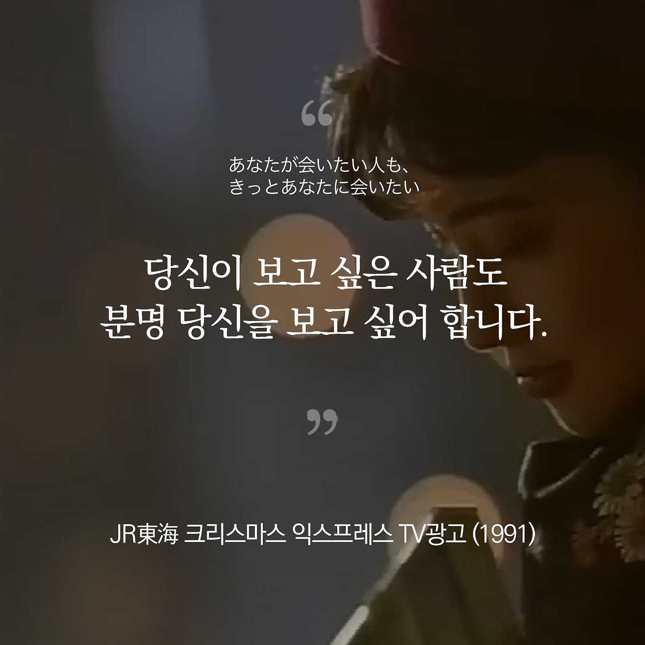 이번 주는 버블경제 시대의 대표적 캠페인 중 하나인 JR東海(토카이)의 크리스마스 익스프레스 TV광고 카피를 소개합니다.