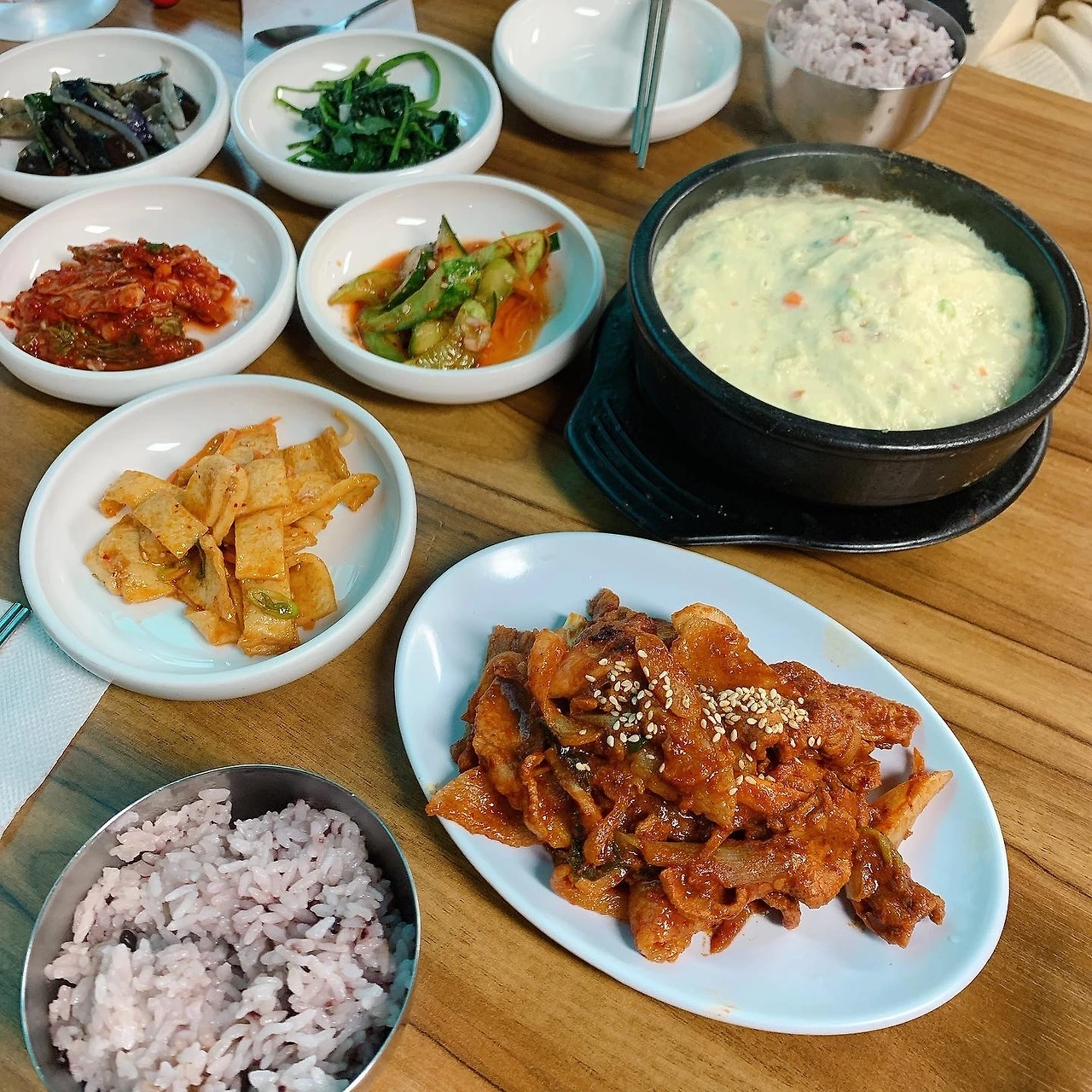 분당 효자촌 우성프라자 상가 안에 있는 이 곳은 20년 넘게 자리를 지키고 있는 분당 터줏대감이다. 다른 메뉴는 없고 사람 수 대로 한상 차려 주시는데 구성이 20년 넘게 그대로다. 반찬들과 된장찌개 그리고 계란찜이 매우 맛있다.