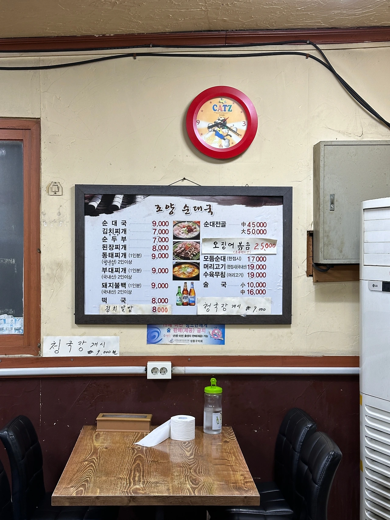 메뉴는 순대국을 필두로 다양한 찌개 등 식사 메뉴들이 있고,