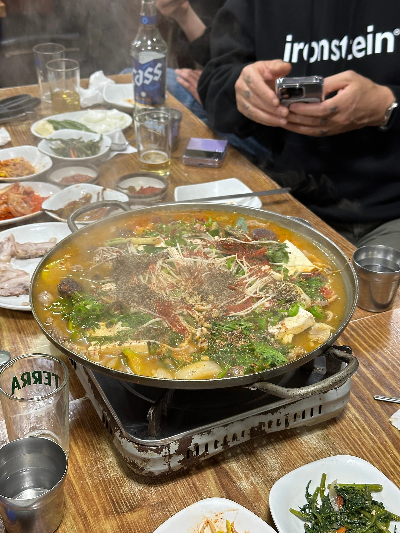 순대, 머리 고기, 두부, 버섯, 쑥갓, 갖은 야채까지 푸짐하게도 나온다.