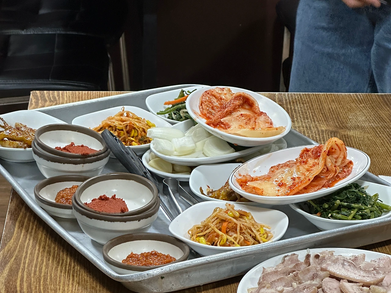 순대국만 시키면 김치 / 깍두기 / 부추무침 / 고추, 양파 정도가 나온다.