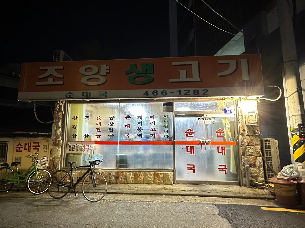 그 속에서 우두커니 자리를 지키고 있는 조양 생고기 순대국.