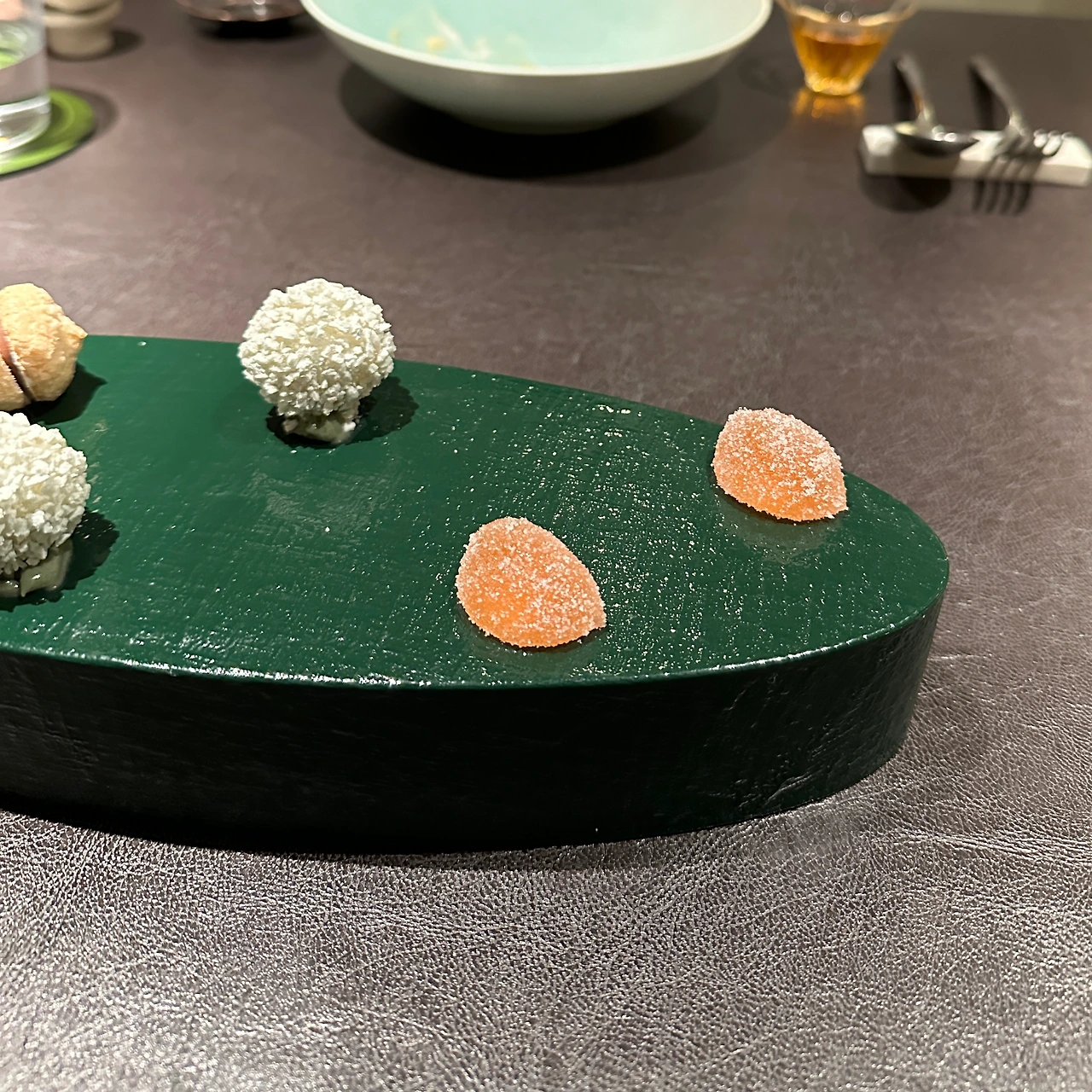 한 입 거리로 제공된 자몽, 쑥, 밀크 초콜릿 다과와 커피로 완벽한 마무리를 하며 감상평을 나누다 보니