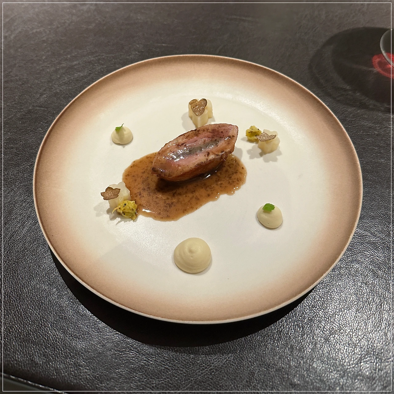 메추리에는 트러플과 셀러리악 퓌레, 돼지감자가 곁들여졌다.