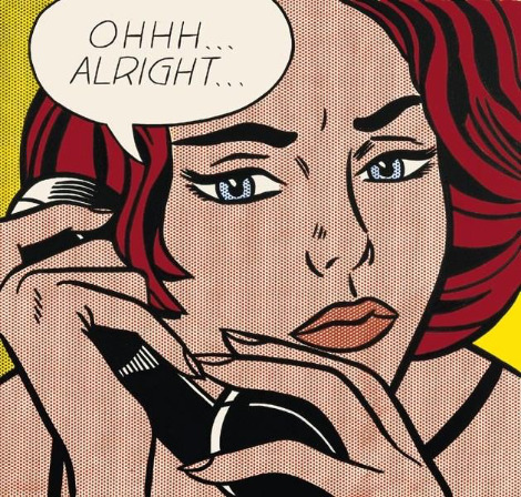 드디어 만화를 노골적으로 베낀 로이 리히텐슈타인의 ‘행복한 눈물’에 다다랐다. ‘행복한 눈물’이 머그컵에 프린트 될 정도로 한국인에게 인기가 있는 것은 등장인물이 워낙 크고 시원시원하게 그려져 머그컵 크기로 축소되더라도 그림이 또렷하게 디테일이 살아있고, 영어를 몰라도 행복한 눈물을 흘릴 정도라면 말풍선 안의 영어로 씌어 진 내용이 좋은 말일 것이라고 알아서 상상하는 버릇과, 지나치게 세부적인 묘사를 싫어하고 생략을 좋아하는 전통이 합쳐진 결과라고 본다.