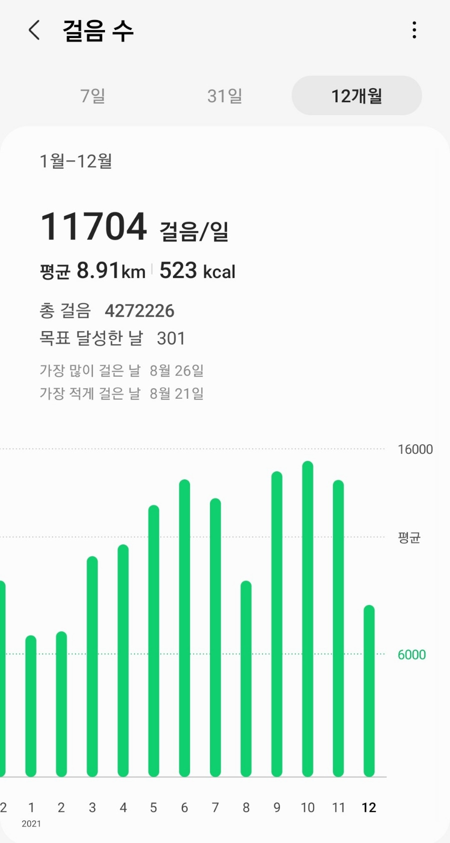 3. 달리기 싫어서 걷기 시작했다. 올해 4,271,350보를 걸었다. 거리로 환산하면 3,252km다.