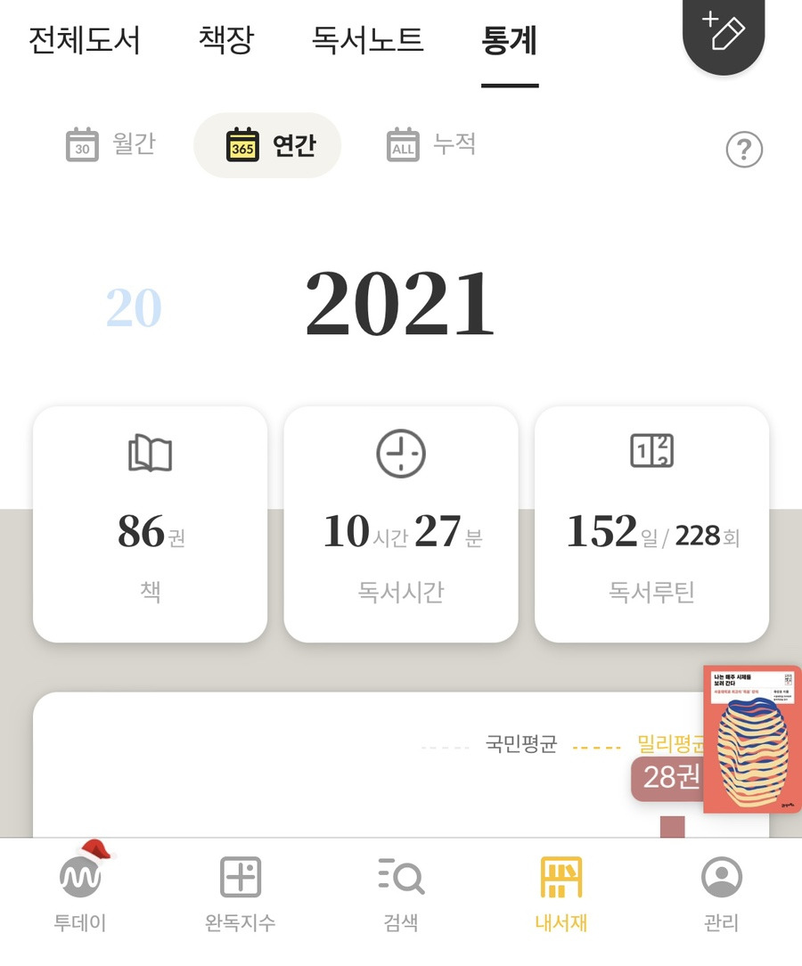 5. 올해 밀리의 서재에서 86권의 책을 읽었다 빌렸다. 2년 동안 밀리의 서재를 이용하면서 230권의 책을 읽었다 빌렸다.