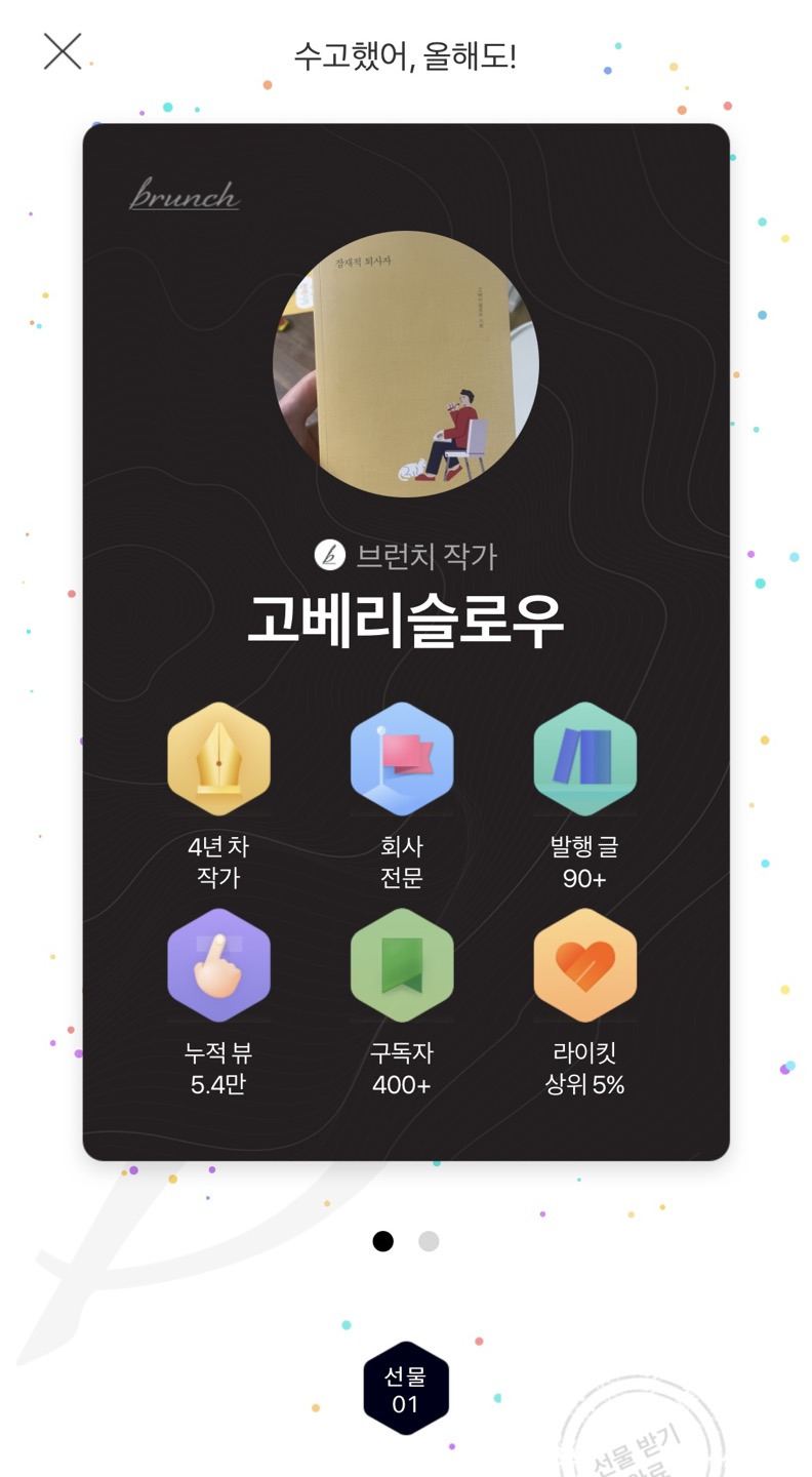 6. 올해 항상 글을 쓰진 않았지만 꾸준히 글을 썼다. 브런치 구독자는 대략 30명 정도 증가한 것 같다. 내가 글쓰기로 뭘 이루고 싶은지는 여전히 고민 중이다. 브런치에서 만들어준 연간 글쓰기 레포트 상 내 전문분야가 '회사'라는 게 좀 놀라웠다.