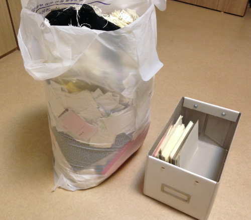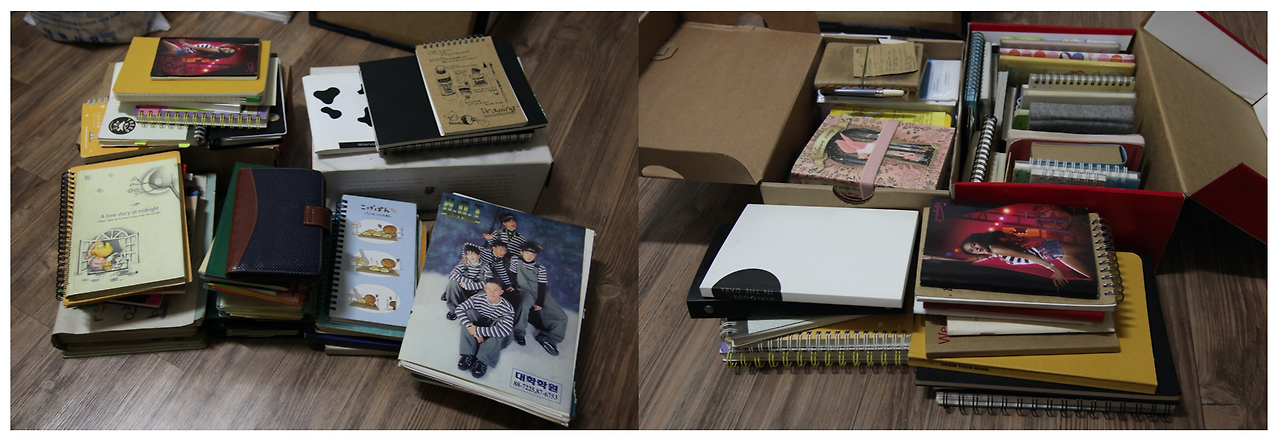 물건을 정리하면서 가장 버리기 곤란했던 것이 일기장, 종이에 끄적인 메모들, 작은 수첩이 담긴 상자였다. 커다란 정리용 수납 상자 하나와 신발 상자 3개 정도 분량이었다.