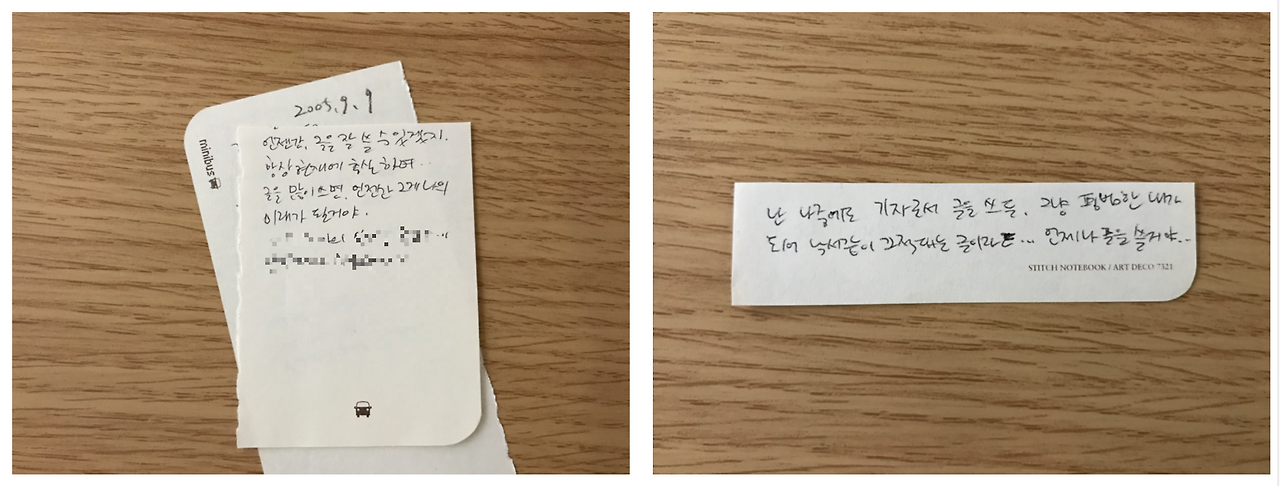 겉으로는 친구들과 어울리며 지냈지만 원래 내가 갈 학교가 아니었다는 생각을 많이 해서인지 겉도는 관계를 유지했고, 그러면서 느꼈던 불편함이나 혼란 등 수많은 감정을 일기장 두 권에 담았다. 그래서인지 정리하면서도 감히 쳐다보거나 펼쳐보고 싶은 생각조차 들지 않았다.