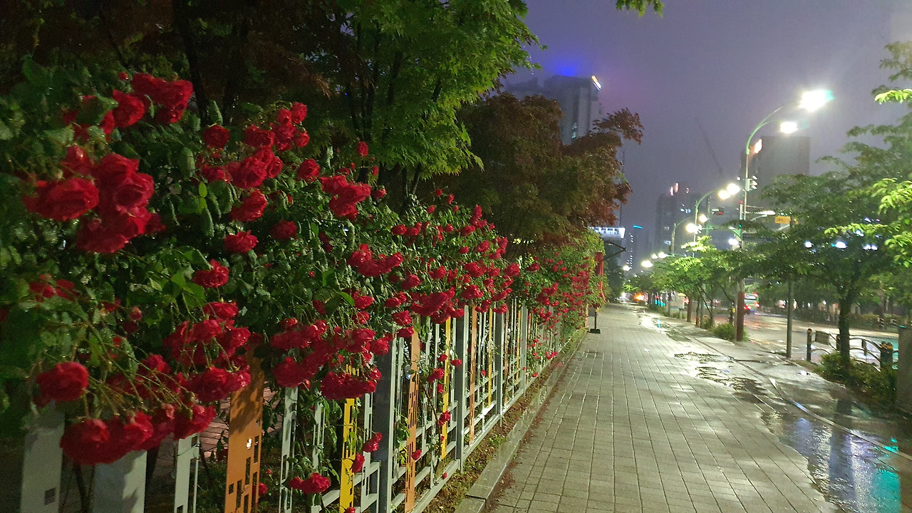집 뒤쪽으로 초, 중, 고, 4개의 학교가 직렬로 이어져 있어, 학교 앞길은 좋은 산책로가 되기도 한다. 특히 비가 오거나 눈이 내릴 때도 물 빠짐이 좋고, 깔끔하고 정돈된 보도블록과 적당히 밝은 가로등이 늘 안정감을 주어, 비 오는 날 우산 쓰고 걷기엔 최적이다. 늦은 밤에도 책을 읽거나 글을 쓰다가 머리를 식히고 싶을 땐, 아파트 정원을 한 바퀴 돌아서, 학교 앞길을 몇 번 왕복하여 걷고 와도 충분한 산책과 운동이 된다. 빨간 장미로 뒤덮인 학교 울타리는 향기를 뿜어내며 살아 숨 쉬는 예술품 같다.