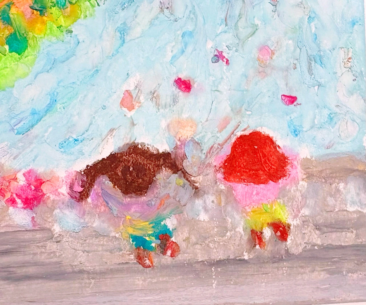 그 꽃을 두 손 가득 가지고 다리 위로 간다.