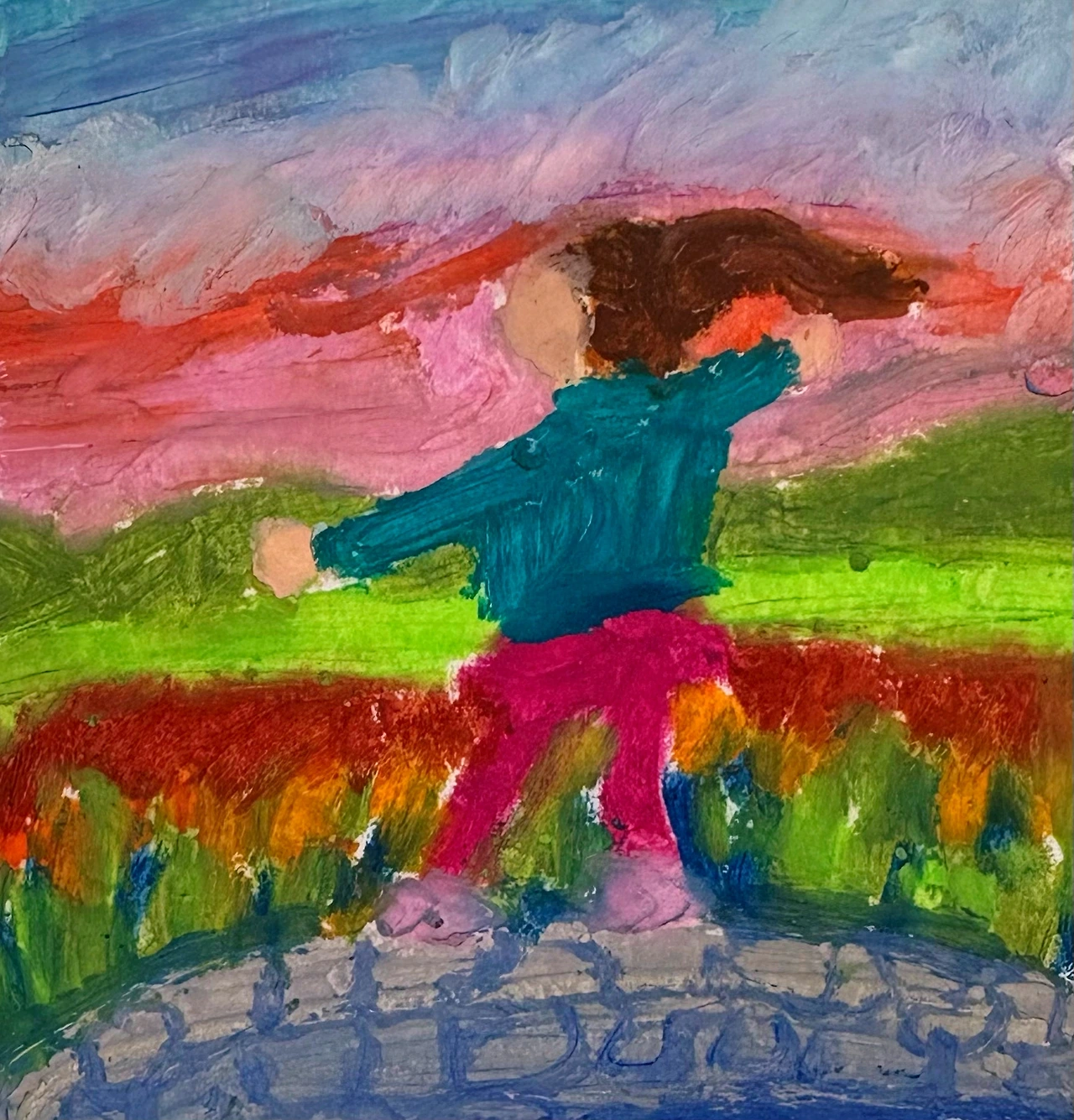 그때 우리는 정말, 그 돌 울타리 위에 올라가 빙빙 계속 균형 잡고 걷는 게 아주 재밌었다.