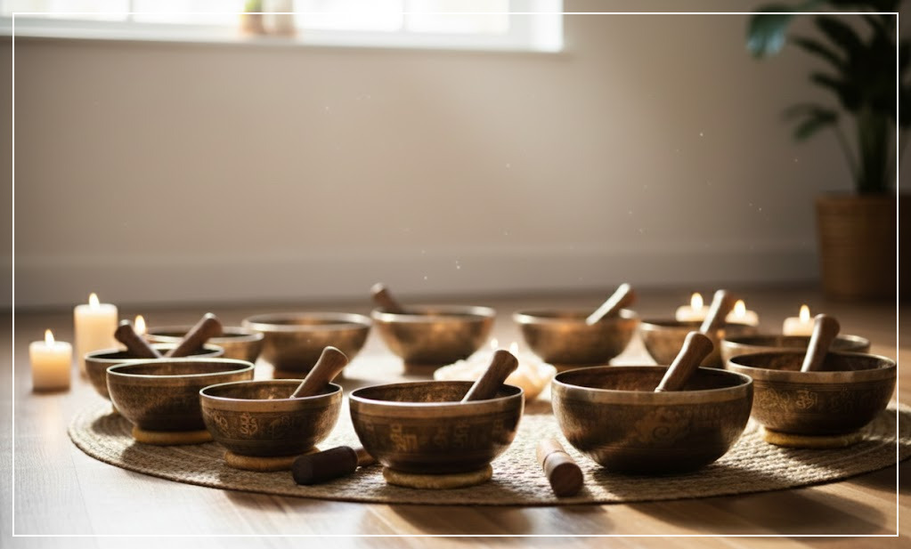 싱잉볼의 파동은 감각기관을 외부 자극에서 잠시 떼어놓고 감각을 다시 ‘내부의 자리’로 돌려놓는 역할을 합니다. 바로 이 지점에서 감각의 방향이 바깥에서 안으로 향하고, 프라티야하라가 시작됩니다.