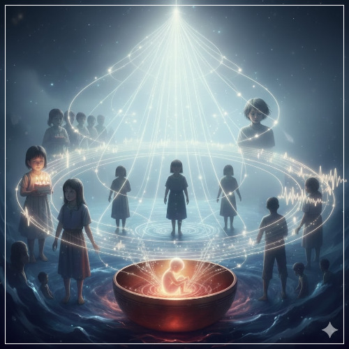 큰 싱잉볼의 낮고 묵직한 소리가 아래쪽에 잠들어 있던 상처받은 꼬마를 깨웁니다.