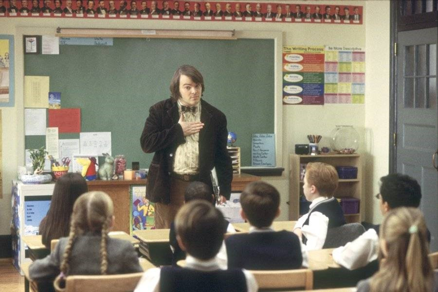그러다가 결국엔 제대로 사고를 치고 마는 듀이 핀. 바로 보조교사 네드의 신분을 훔쳐 호레이스 그린 사립학교에 취업을 해 버린 것이다. 평생을 음악밖에 모르고 살아온 듀이가 학생들에게 역사와 영어, 수학, 과학 등을 가르칠 리는 만무할 터, 그는 수업시간에 분필 대신 기타를 집어 든다.