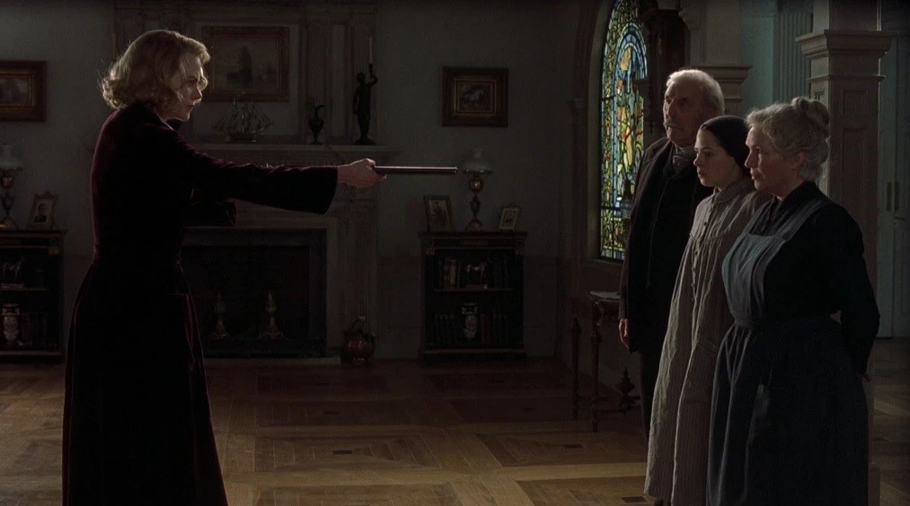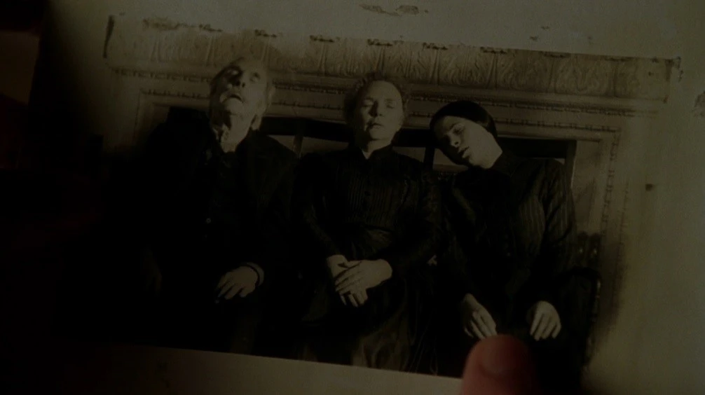 같은 시각, 이전에 이 집에 살았던 이미 고인이된 사람들의 모습을 찍어두었다는 앨범에서 하인 세 명의 사진을 확인한 엄마는 아이들을 보호하기 위해 총을 꺼내든다.