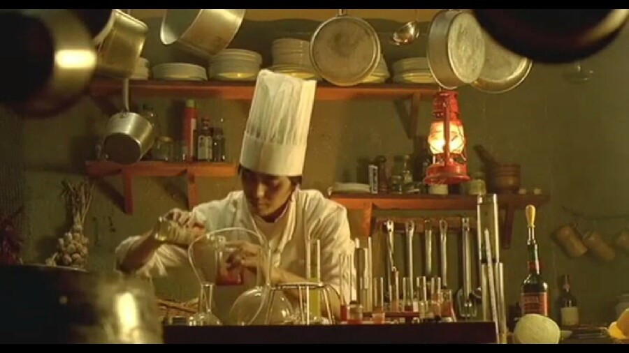 이 영화에서도 가지런히 정렬된 실린더와 비커, 엄격한 조리 순서, 정확히 떨어지는 각의 야채들 등 강박 행동이 여실히 드러나 있다. 요리사의 고독한 완벽 추구의 결과로 접시에는 도미, 야채, 소스, 그리고 고매한 직업 정신과 더불어 수 많은 고민이 담겨 있다.