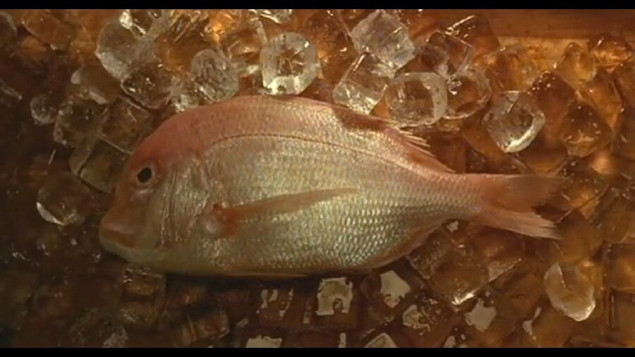 결국 완벽한 도미 요리를 마무리 하기 위해 텅 빈 도미의 눈 부분에 자신의 안구를 빼다 박으려는 요리사. 인간의 안구가 도미의 눈두덩이 안에 들어갈 리가 없다. 몇 차례의씨름 끝에 안구를 떨어 뜨려 버리고, 그것을 잡으려다 도미 요리에 손을 짚어 버리고 만다. 그리고 또 다시 반복되는 요리의 전 과정. 몇번이나 시도를 했는지는 단지 추측만이 가능할 뿐이다.