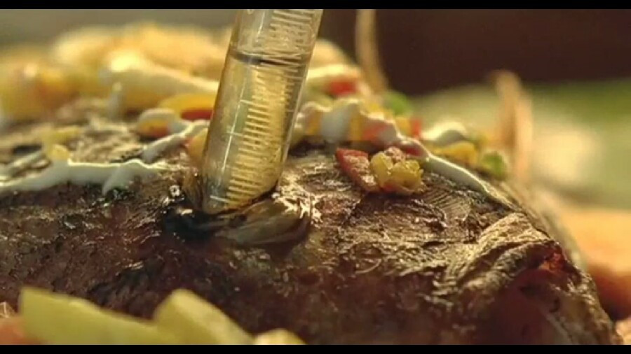오븐에서 잘 구워져 나온 도미를 접시에 옮겨 담고 플레이팅을 시작한다. 돋보기와 핀셋을 이용해 자신의 머릿속에 구상한 최고의 레시피 대로 색색의 야채들을 신중히 배열하는 요리사. 마지막으로 스포이드를 이용해 도미의 눈알에 화룡점정으로 소스를 뿌리려다 재채기를 하고 만다. 그로 인해 스포이드는도미의 눈알에 쳐박히고 그렇게 요리사는 또 한 번의 좌절을 맛본다.
