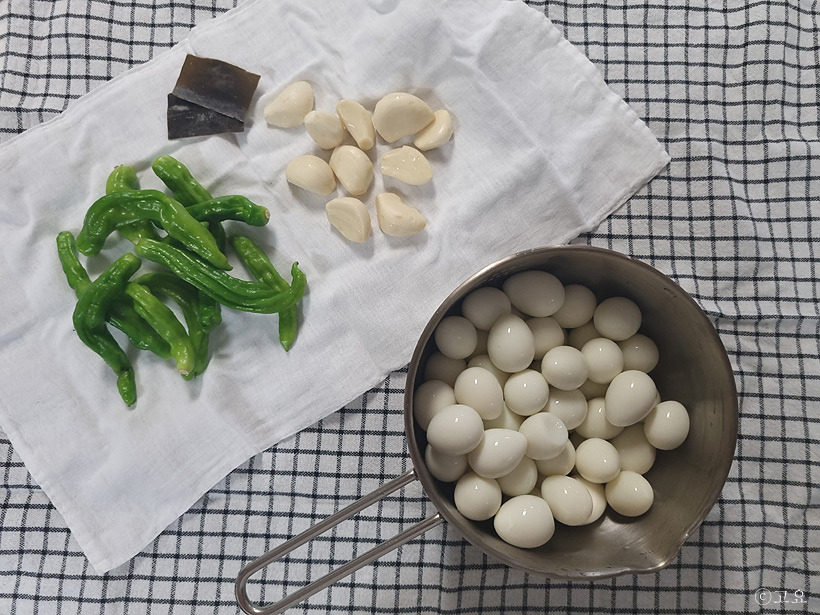 * 본 재료 : 깐 메추리알 500g, 통마늘 10개, 꽈리고추 10개, 다시마 2조각