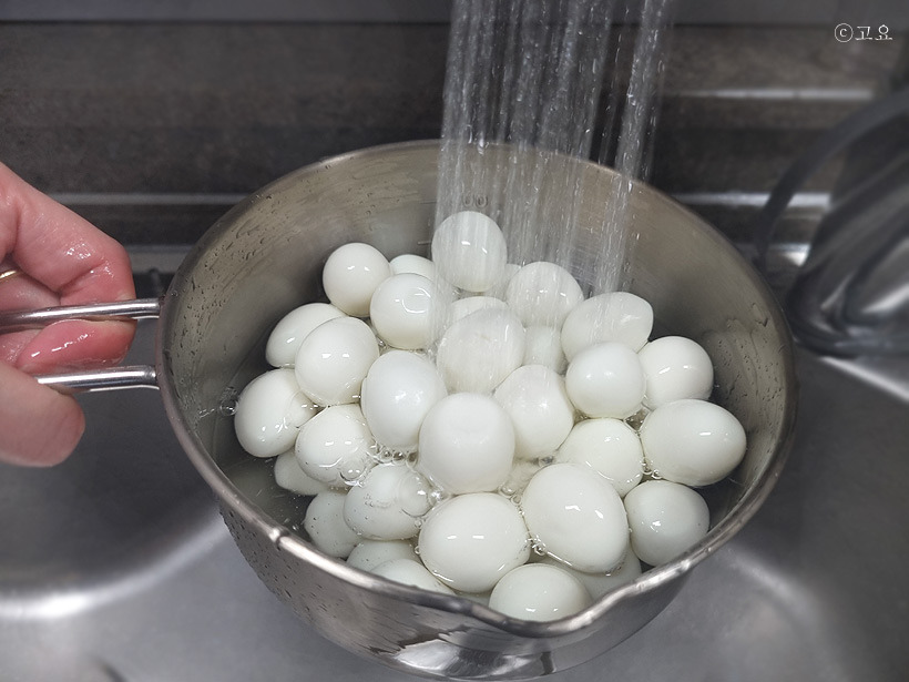 1. 깐 메추리알은 깨끗한 물에 여러번 세척하여 준비한다.