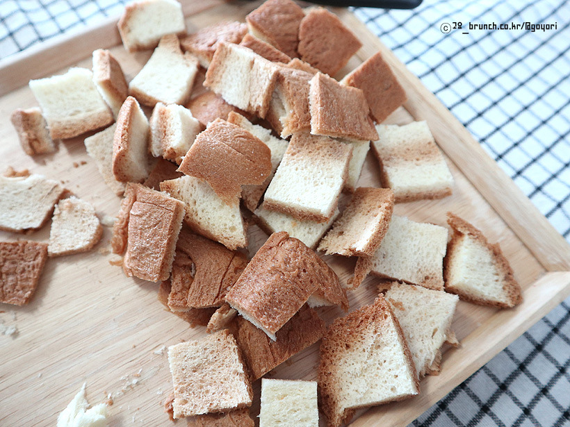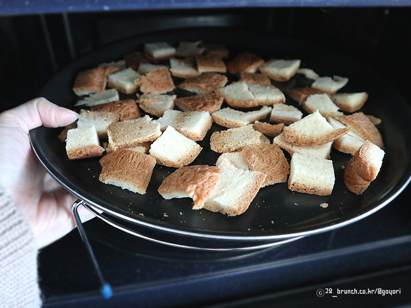 ⊙ 식빵 크루통 - 촉촉한 식빵 속은 나의 몫