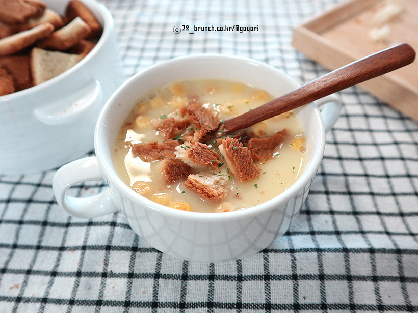 그냥 먹으면 과자처럼 바삭바삭하고, 고소해서 계속 손이 가고, 스프와 함께 먹으면 든든함이 배가 된다. 샐러드에 넣어도 좋고, 우리 남편은 감바스랑 함께 먹는 걸 아주 좋아한다.