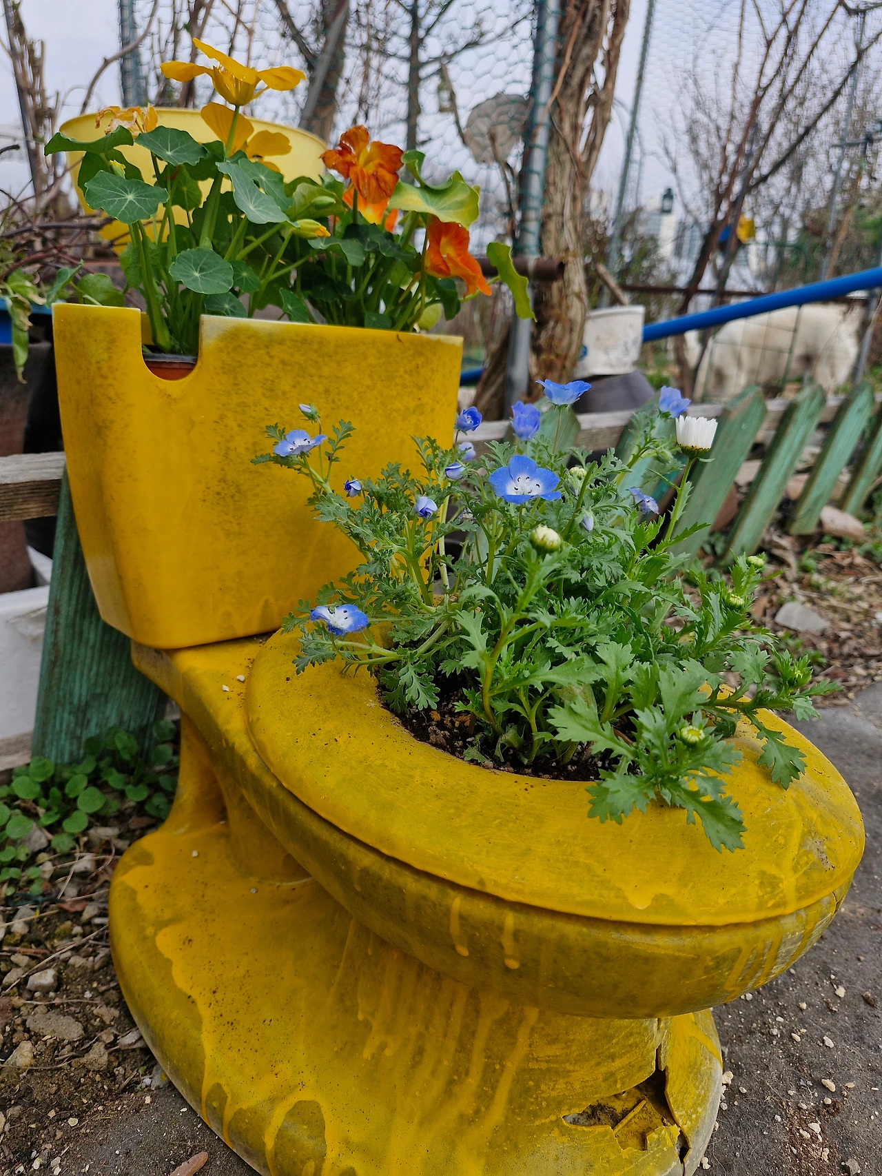 노란 변기통에..