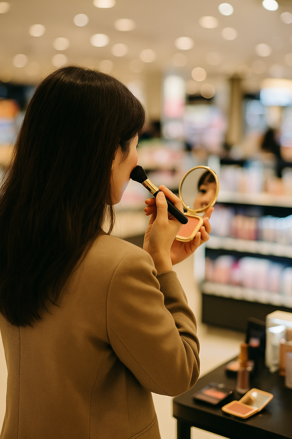 거울 속 나는 샵 언니가 추천해준 블러셔를 살짝 얹어