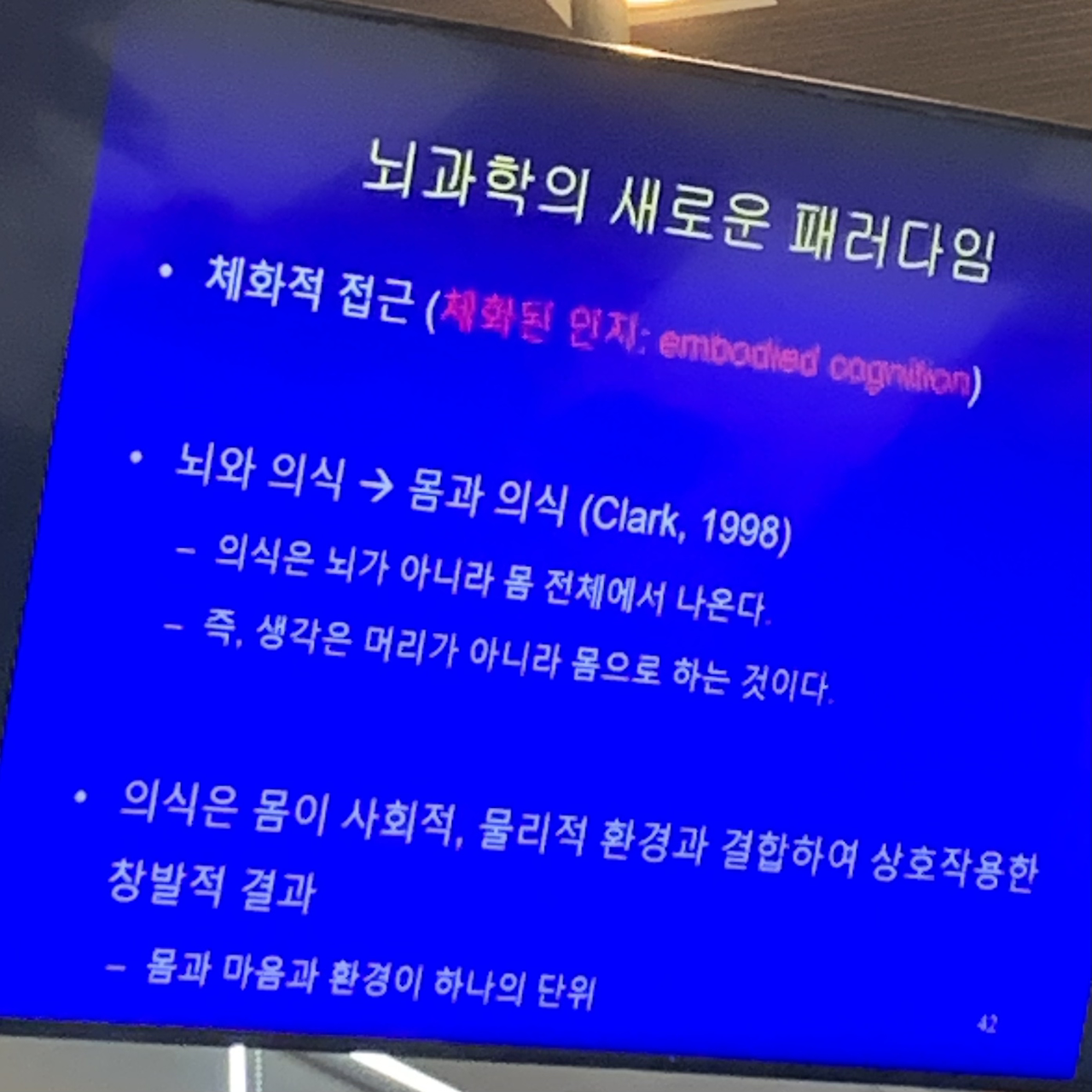 ‘나’를 정의할 때 대부분 정신, 의식, 그러니까 뇌를 우선하는 경향이 있지요. 하지만 인공지능이 인간을 대신해 많은 것을 해내는 시대에 우리는 인간의 ‘몸’을 새롭게 봐야 한다는 내용이었습니다.