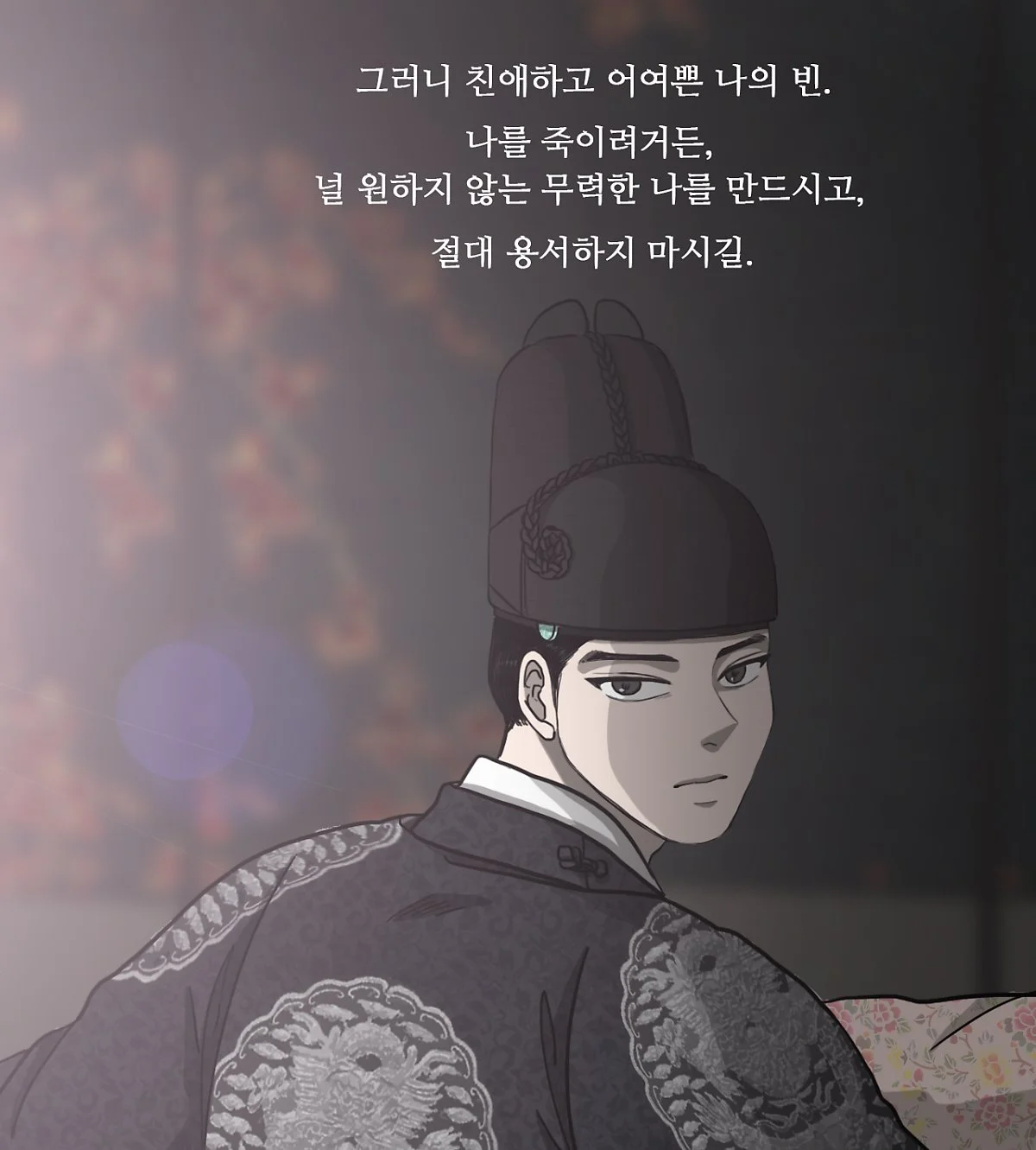 아이 때부터 감정이 담기지 않은 교연의 서늘한 눈매에서 눈을 뗄 수 없었다. 자포자기한 듯 어떠한 부당한 요구나 괴롭힘도 무시하듯 받아들이는 흔들림 없는 그의 눈이 그의 삶을 대변하는 듯했다. 그런 그에게 여혜라는 목표가 생겼다. 누구도 가질 수 없는 머리 장식(=왕관)을 가지게 해 주마 했던 약속을 끝내 지켜내지만, 그렇게 해서 과연 여혜는 행복해졌을까? 아니면 반대로 교연이 신분에 대한 생각을 떨쳐버리고 여혜와 알콩달콩 잘살고자 했다면 그 소원은 이루어질 수 있었을까? 알 수 없는 미래이기에 그의 선택과 행보에 대해서 함부로 얘기하긴 어렵겠지만 가져보지 못한 행복을 좇기만 하다 생을 마감한 인물이라 가장 안타까움이 컸던 듯하다.