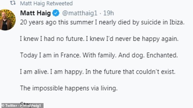 유명 작가가 된 후 매트 헤이그는 자신의 우울증과 젊은 시절 자살 시도에 대해 인터넷에 공개하는데요. 위 트윗을 읽어보면 자살을 시도할 때의 노라의 심정과 다시 삶으로 돌아왔을 때의 노라의 믿기지 않으면서도 다소 홀가분한 기분까지 느낄 수 있는 것 같습니다.