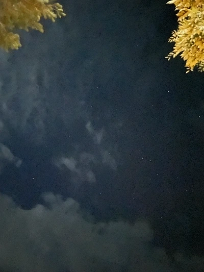 처음에는 구름이 많더니 시간이 흐를수록 하늘이 맑게 개었다! 두 손을 모아 최대한 눈 주변을 어둡게 했더니 밤하늘에 별이 더 또렷이 보였다. 이 순간을 담고 싶어 스마트폰으로 사진을 찍어봤지만 눈으로 보는 것과 화면 속 별은 너무나 다르다.
