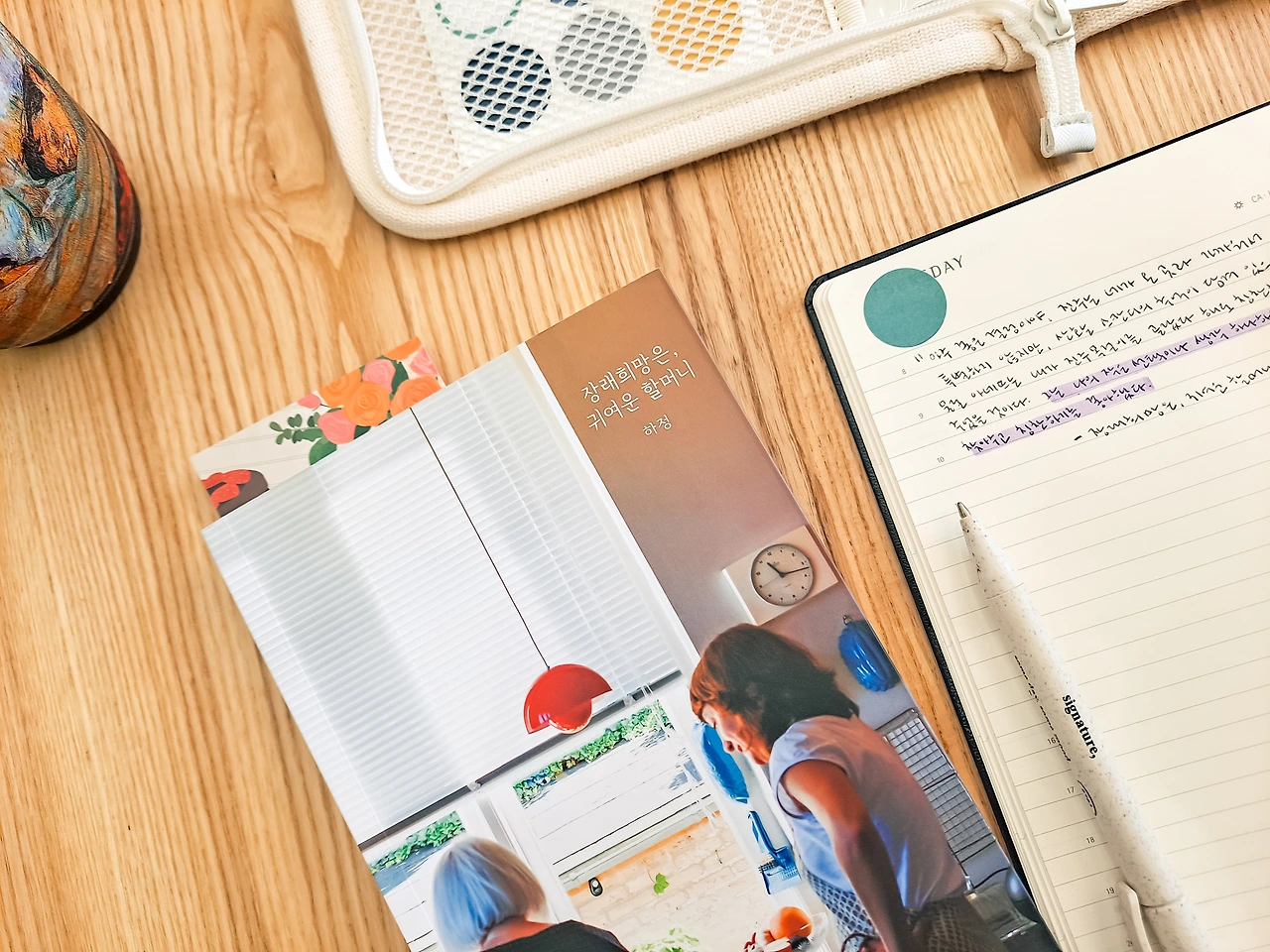 "아주 좋은 결정이야. 진주는 네가 온 곳과 가까워서 특별하지 않지만, 산호는 스칸디의 추억이 담겨 있으니까."물론 아네뜨는 내가 진주 목걸이를 골랐다 해도 칭찬해 주었을 것이다. 그는 나의 작은 선택이나 생각 하나하나에 가치를 찾아주고 칭찬하기를 좋아했다./장래희망은, 귀여운 할머니
