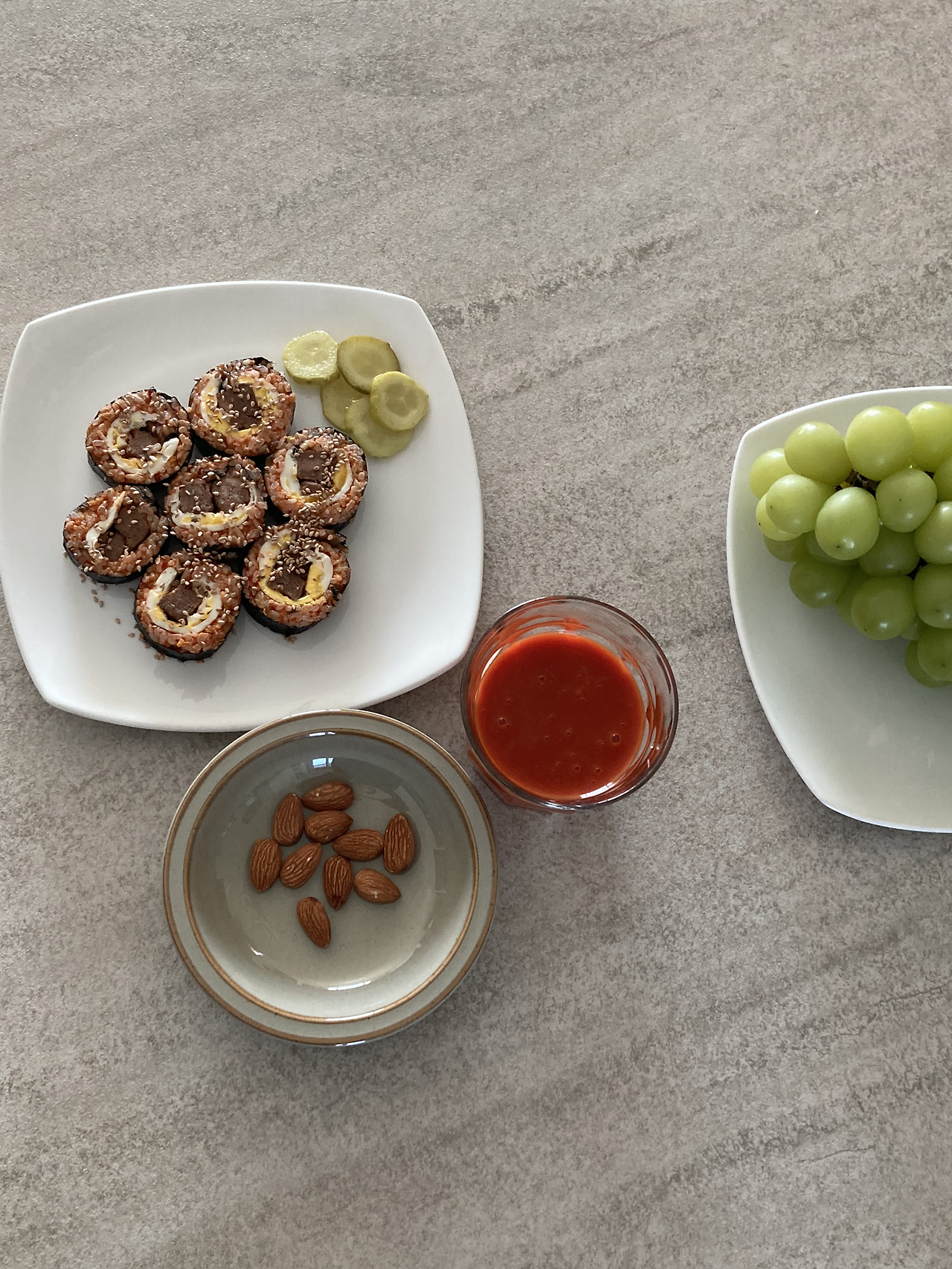 간단한 음식이 일상이 되었지만, 오늘은 더 간단한 걸 원하네요. 늦게 일어난 아이를 빈속으로 보낼 수 없어 부랴부랴 김치볶음밥과 떡갈비, 계란프라이 넣은 계획에 없던 김밥을 말아서 핑거푸드로 만들었습니다. 아이는 창조된 음식을 거부하지 않고 외출 준비하며 하나씩 입에 넣는 모습이 참 예쁩니다.
