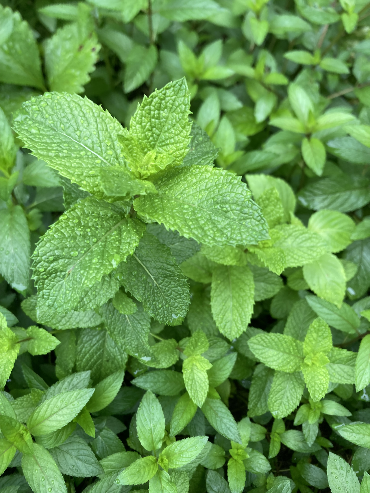 허브 잎을 쓰다듬는