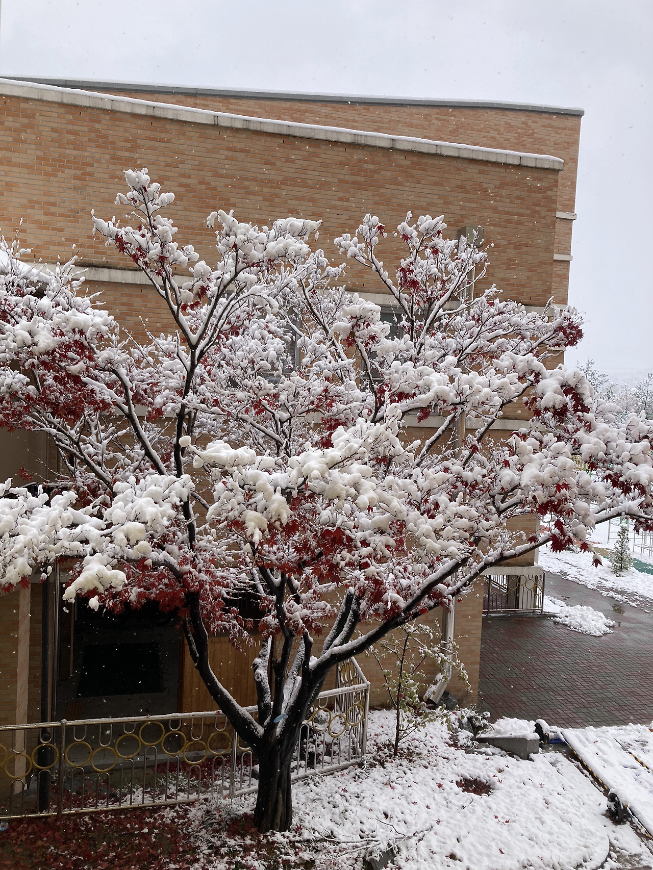 단풍나무가 여전히 붉은 잎을 간직한 채 있는데, 눈이 내린다고 해서 정말 겨울이 올 수 있을까? 아직도 내 마음속에서 너는 그대로인데, 흰 눈에 덮인다고 그리움을 지울 수 있을까?