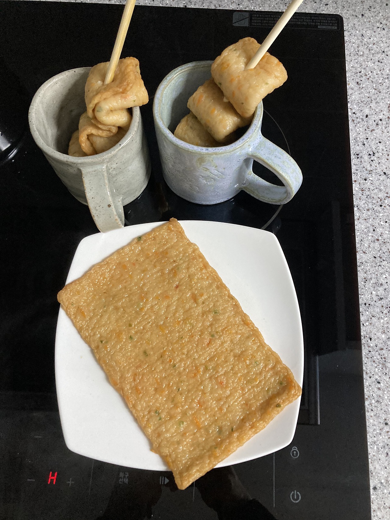마침 냉장고에 도톰한 어묵이 있어, 아이가 수학 문제를 푸는 동안 간단히 간식을 준비해 주기로 했습니다. 참고로, 주 3회 학원 수업은 집에서 주 5회로 대체하기로 합의했습니다 :-)
