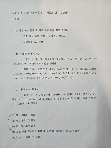 이번 1년 검사에서는 걱정이 되었던 갑상선까지 보고 PET CT를 통해 다른 곳에 또 전이가 있는지 확인을 했다. 기존 유방외과에서 매번 갑상선을 봤는데 갑상선이 거칠고 수치도 정상보다 조금 낮다며 약을 처방해 줬는데 먹지 않았다. 이번 결과에서는 정상이었다. 이때까지 처방받은 것들이 보험에서 문제가 되어 부담보로 잡혀 버렸는데 진짜 억울한 심정이다. 약 처방은 신중히 할 필요가 있다.