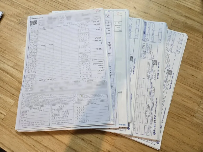 그리고 수술 후부터 지금까지의 영수증과 세부내역서..... 책 한 권 나온다.