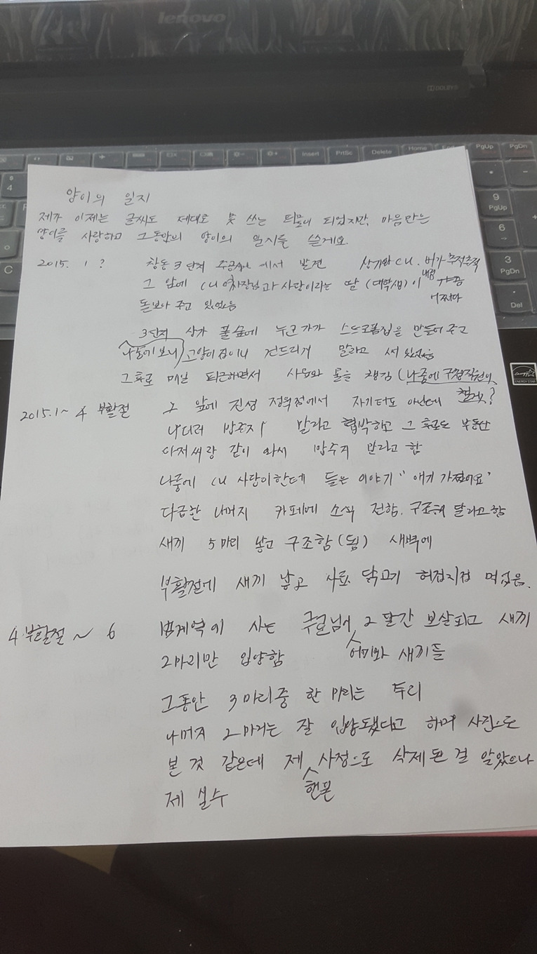 그리고, 내 앞으로 편지가 하나 왔습니다. 당신이 손수 쓴 방글이의 일지였습니다. 언제 처음 발견했는지, 어떻게 케어했는지... 기억을 더듬어가며 쓴 글이었어요. “제가 이제는 글씨도 제대로 못 쓰는 퇴물이 되었지만, 마음만은 방글이를 사랑합니다”까지 읽고, 한참동안 다음 줄을 읽지 못했습니다. 당신은 방글이뿐만 아니라 내 마음도 어루만져 주었습니다.