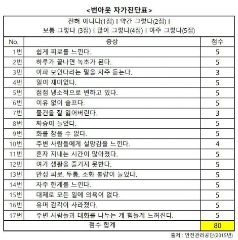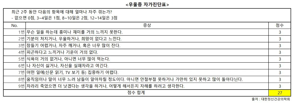 65점 기준인 번아웃은 80점, 10점 기준인 우울증은 27점으로 나타났다. 즉, 내 증상들의 직접적인 원인은 번아웃과 우울증임이 확실했다.