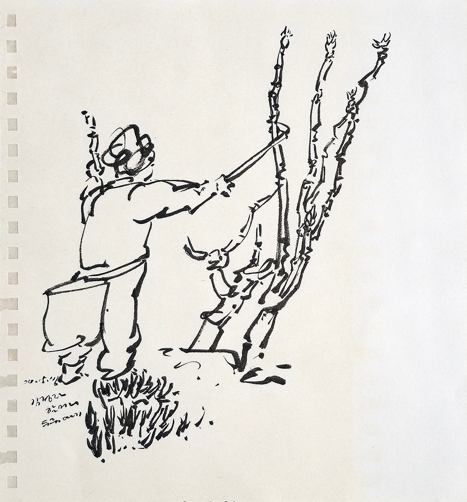 처음엔 조심스러워 주저주저함이 보였으나, 민통선 지역인 탓에 점점 나가야 할 시간이 다가오니 끝을 내야 한다는 긴박함과 그려가는 동안 얻은 숙달됨이 자유롭고 과감한 필치를 만들어내었다. 눈은 보고, 그 즉시 머리는 생각을, 가슴은 벅찬 감동을 품는다. 그리고 손은 그것을 그려내니, 쉽지 않은 과정이 짧은 시간에 이루어져야 한다.