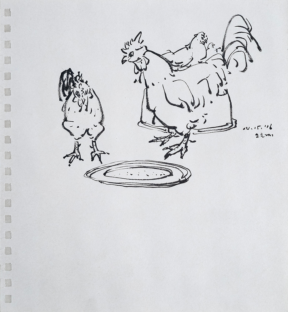 _2016/04/15 드로잉노트: 안대리임병욱할아버지, 오골계