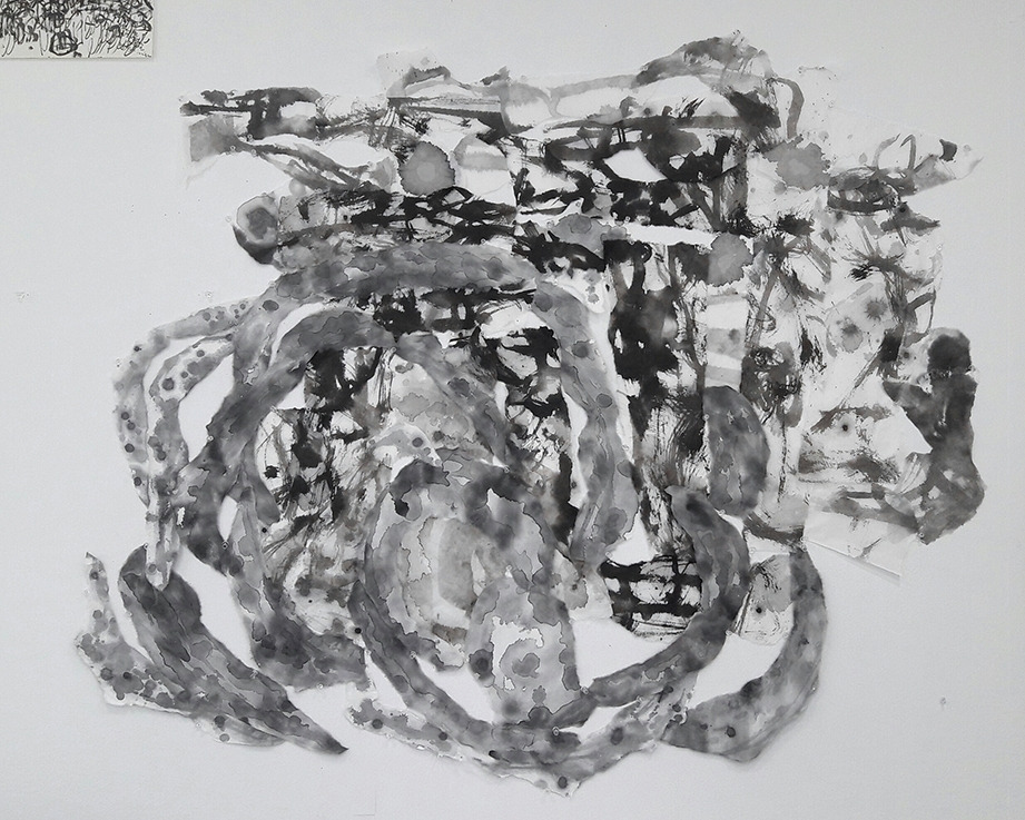 '땅굴' 100호 먹 드로잉 콜라주 작업과정 _2016/04/18