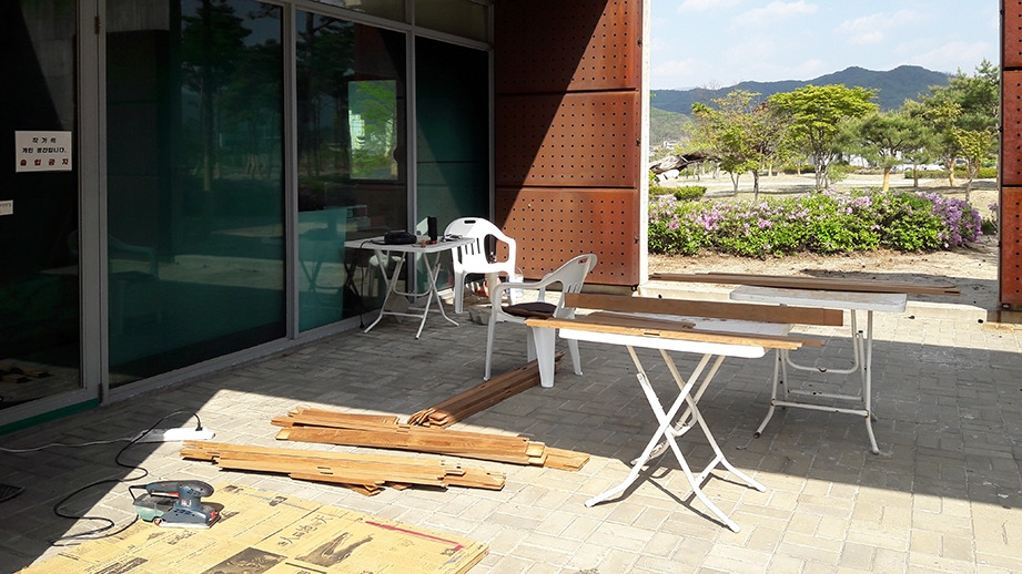 작업실 앞마당. 틀 제작과정, 표면 다듬기 완료 _2016/04/29