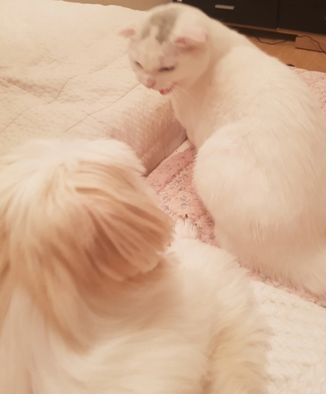 쿠키와 크림이의 관계에 대해 개와 고양이가 어떻게 이리 잘 지내는지 궁금해하고 신기해하는 사람들이 많다.