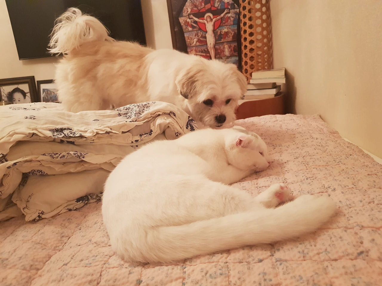 집사들만 분주한 건 아니었다. 쿠키의 관심사도 오로지 크림이었다. 개와 고양이의 격리기간 내내