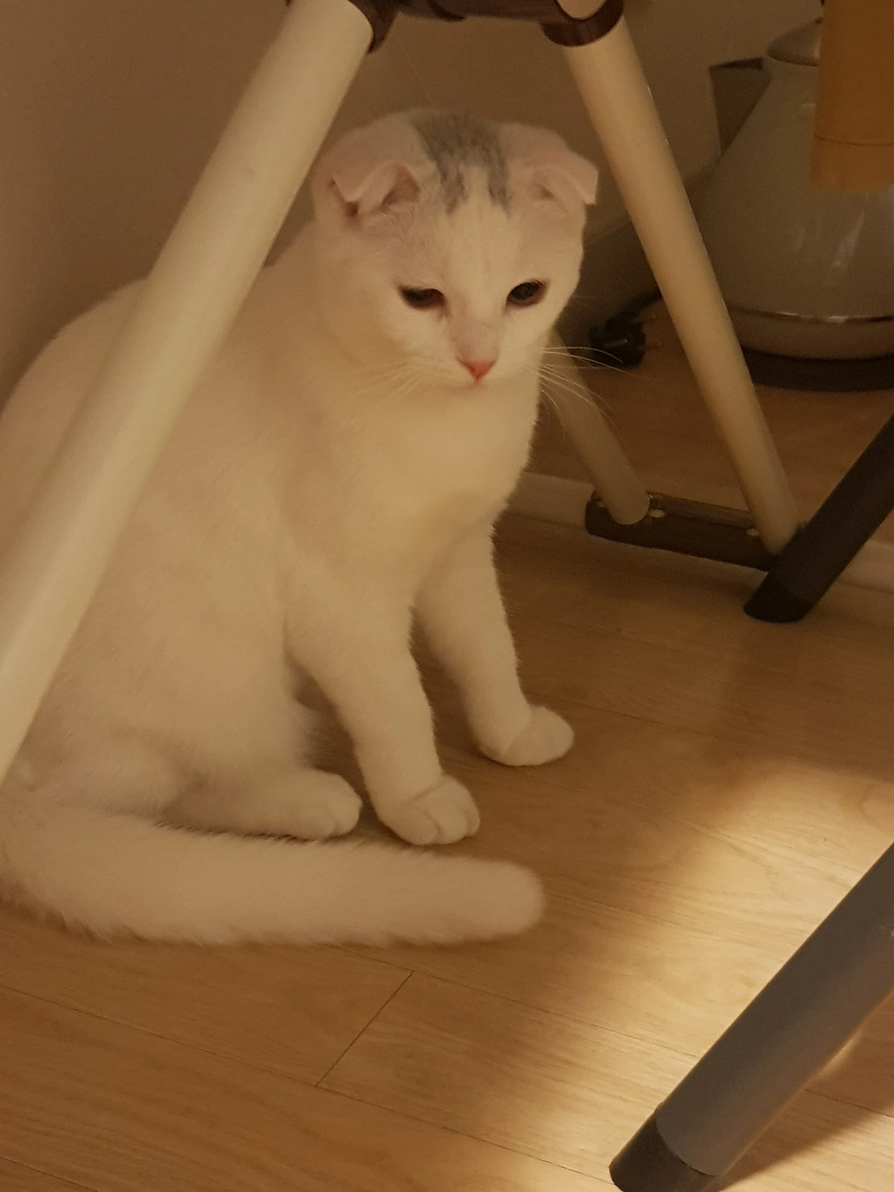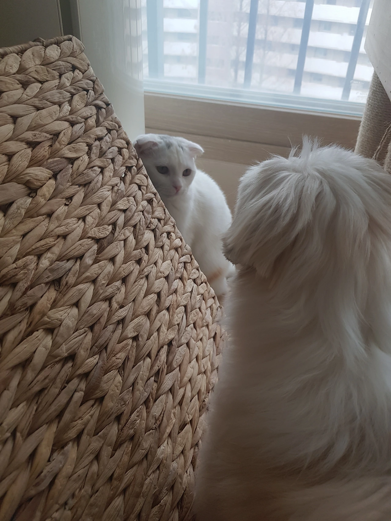 모두들 침을 꼴깍 삼키며 조심스레 이동장 문을 열었다. 눈부시게 하얀 고양이가 레드카펫 위를 밟는 여배우 마냥 사뿐사뿐 걸어 나왔다.